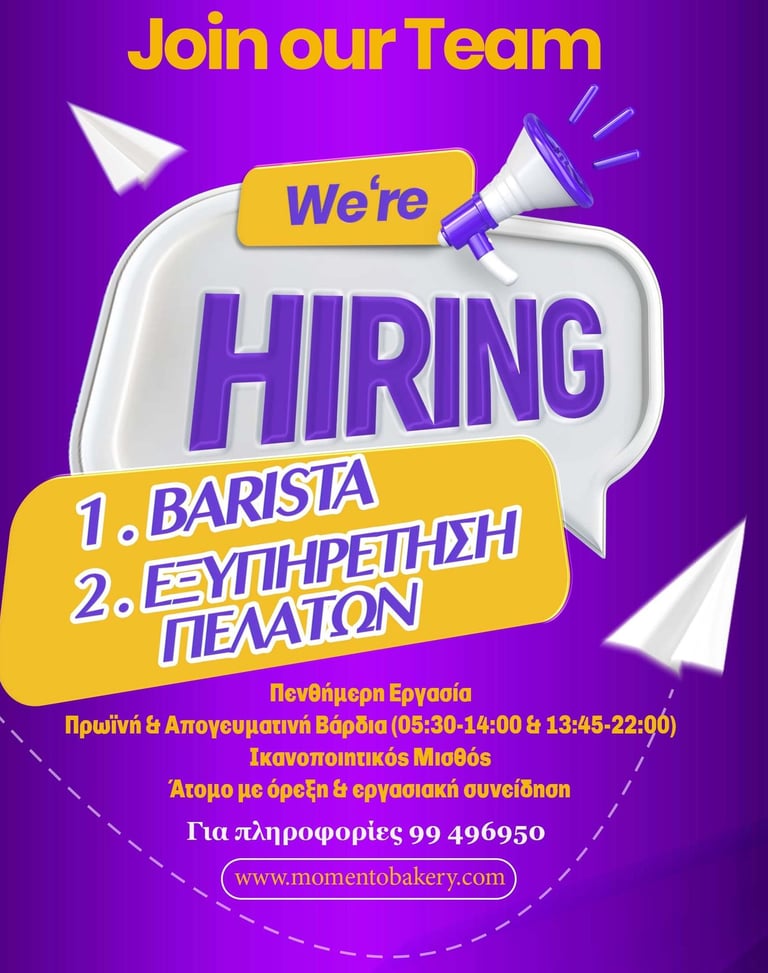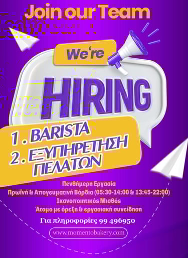 Μπορείτε επίσης να στείλετε και το βιογραφικό σας στο momentosweets@gmail.com